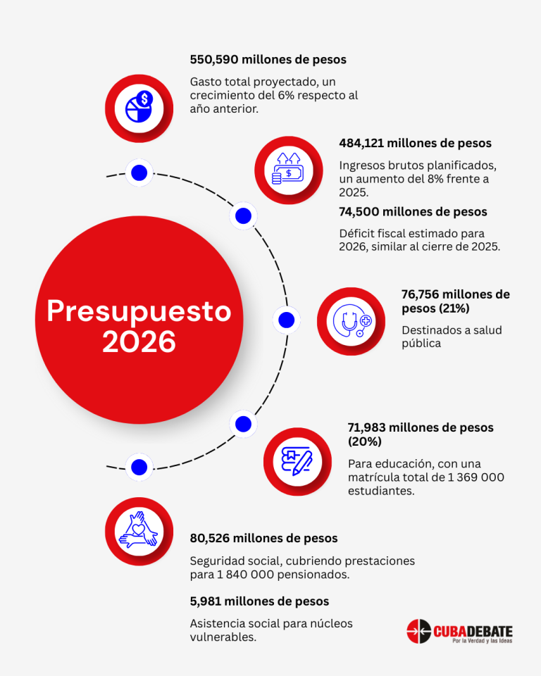 Comentó que la propuesta de presupuesto del Estado para 2026 está marcada por un escenario económico complejo, en el que inciden presiones inflacionarias, limitaciones energéticas, un crecimiento de la demanda de protección social, la necesidad de estimular la producción nacional y la reducción de importaciones, así como el lastre del insostenible bloqueo económico norteamericano.