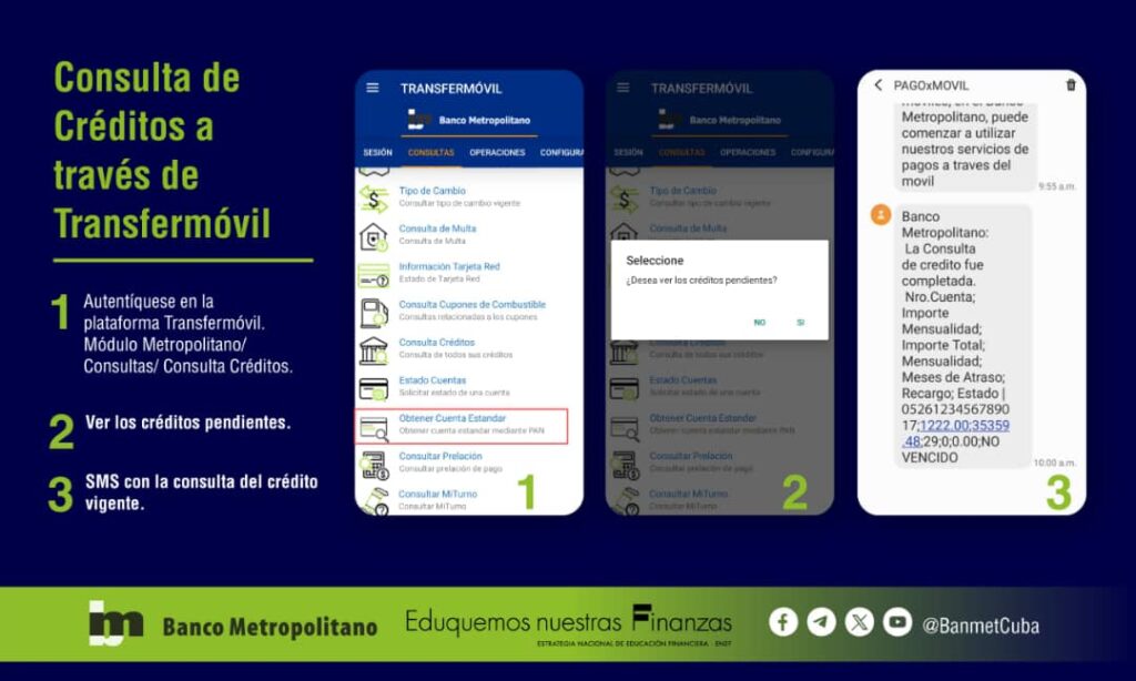 Los clientes del Banco Metropolitano pueden verificar el estado de sus créditos personales directamente desde sus teléfonos móviles utilizando la aplicación Transfermóvil.