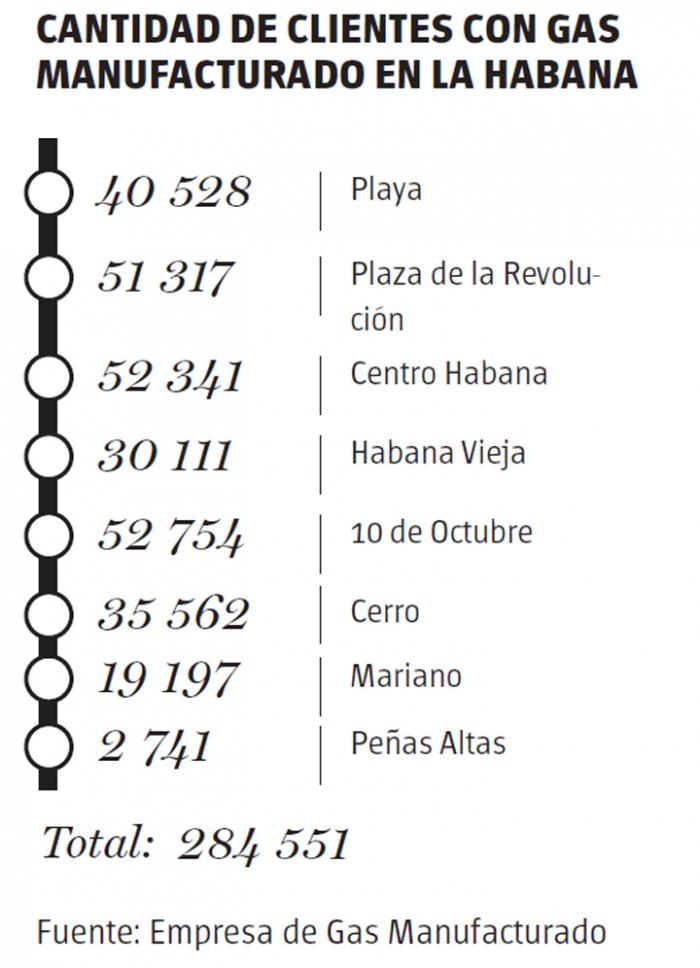 Y gasificando las zonas en las que llega el gas natural –pues todo depende de los yacimientos de petróleo y gas acompañante que se encuentran en la franja norte de Cuba– se disminuyen los consumos de electricidad, y podrá distribuirse mayor cantidad de GLP en otros territorios.