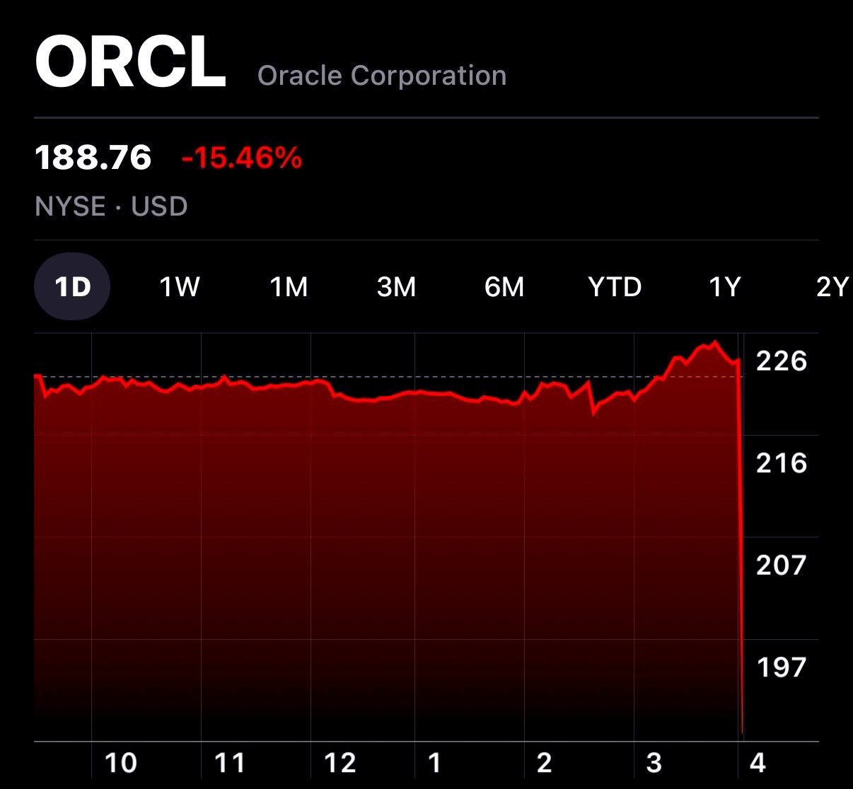 La drástica caída se produjo después de que las acciones de Oracle cayeran más de un 11% en Wall Street.