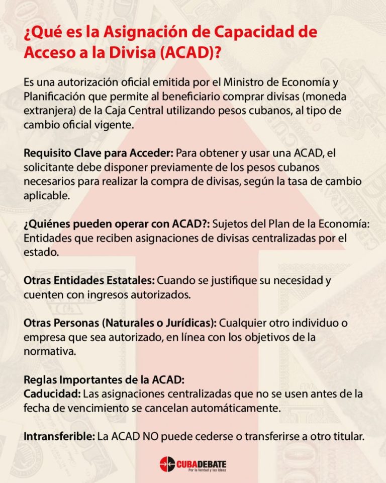 Estos sujetos económicos reciben una autorización para comprar divisas. Esto significa que, para poder acceder a las divisas que se les han asignado, deben tener pesos cubanos suficientes. En otras palabras, la asignación es una capacidad o autorización para adquirir divisas, y para materializarla, la entidad necesita disponer del contravalor en moneda nacional (pesos cubanos) para realizar la compra.